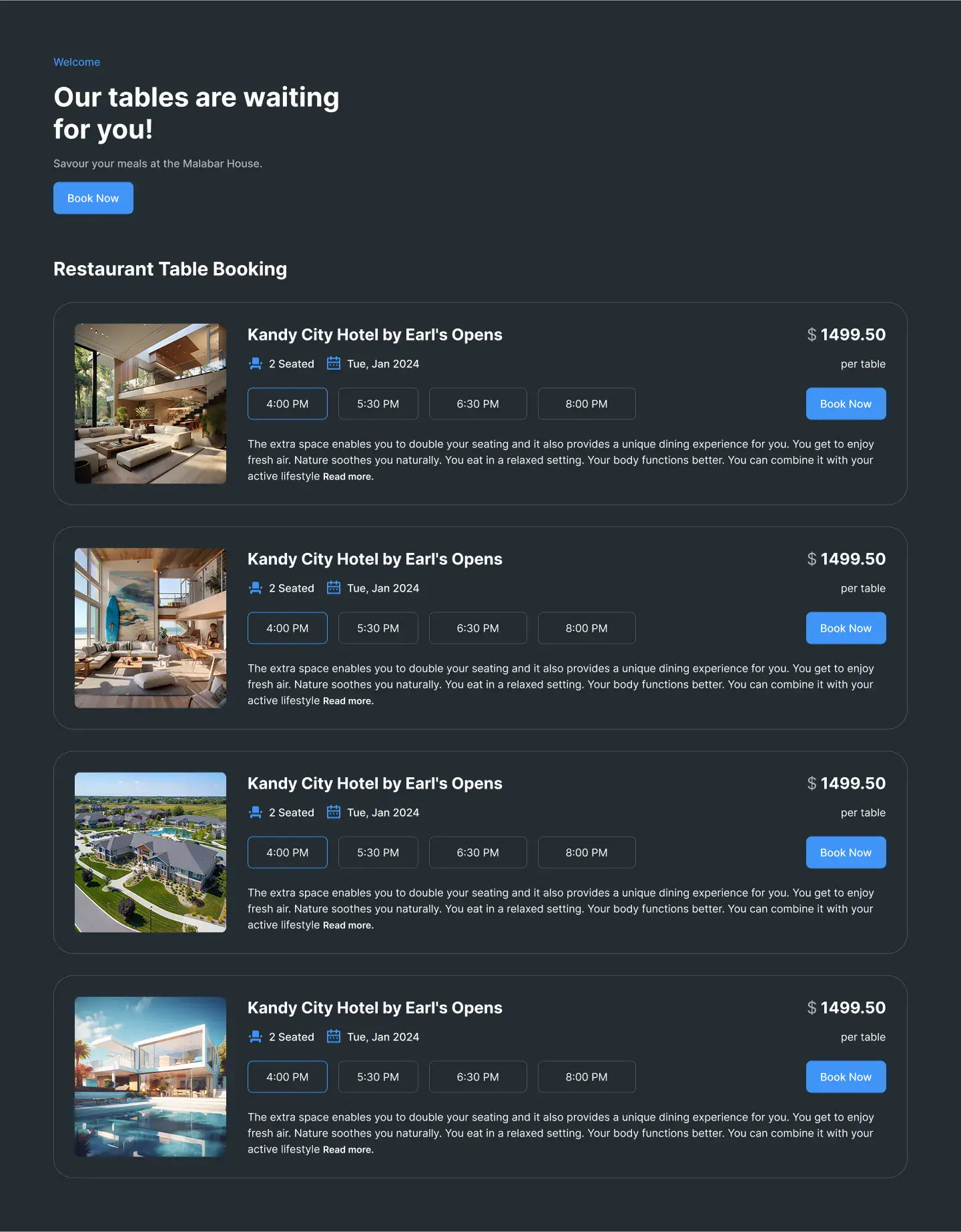 Online Booking Layout — Clean