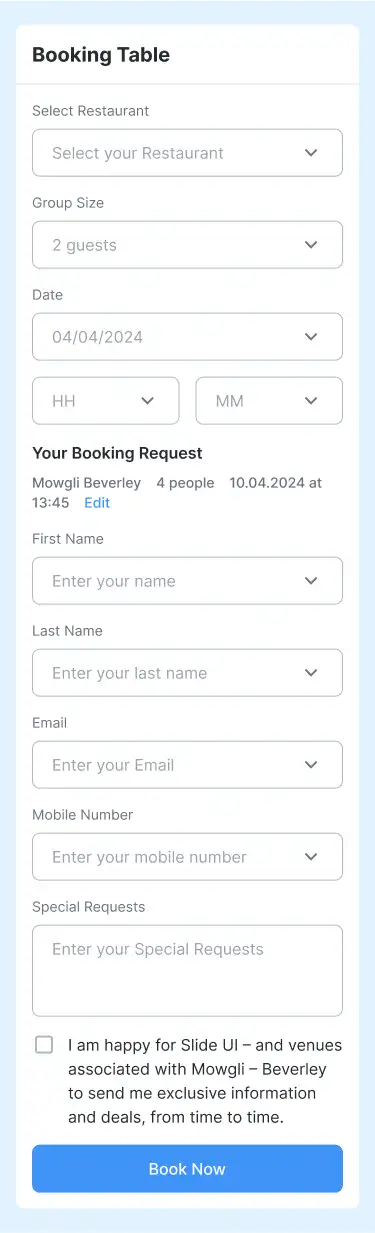 Online Booking Layout for Figma — clean, themeable and responsive across Desktop, Tablet and Mobile. Includes Light, Dark and Accent modes for fast customisation. Ideal for Crypto, Ecommerce, Events.