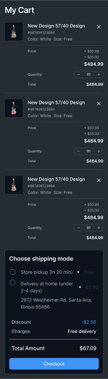 Ecommerce-ready cart, checkout, and payment detail blocks optimised for clarity and conversions.