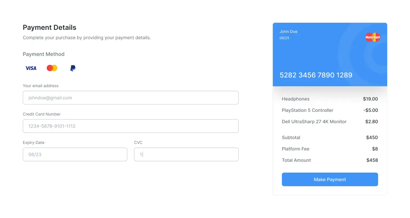 Ecommerce-ready cart, checkout, and payment detail blocks optimised for clarity and conversions.