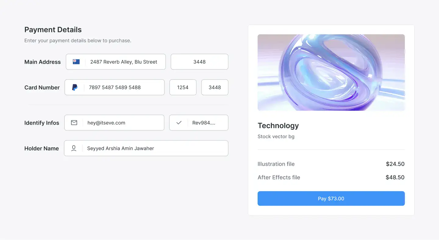 Ecommerce-ready cart, checkout, and payment detail blocks optimised for clarity and conversions.