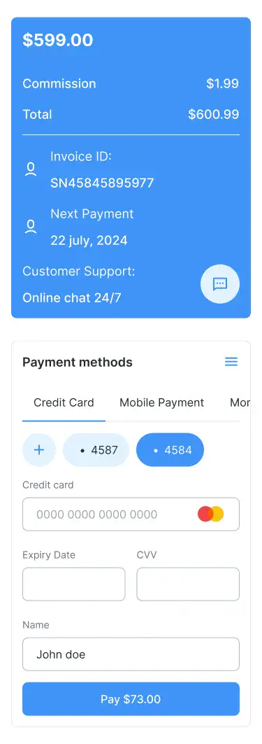 Ecommerce-ready cart, checkout, and payment detail blocks optimised for clarity and conversions.