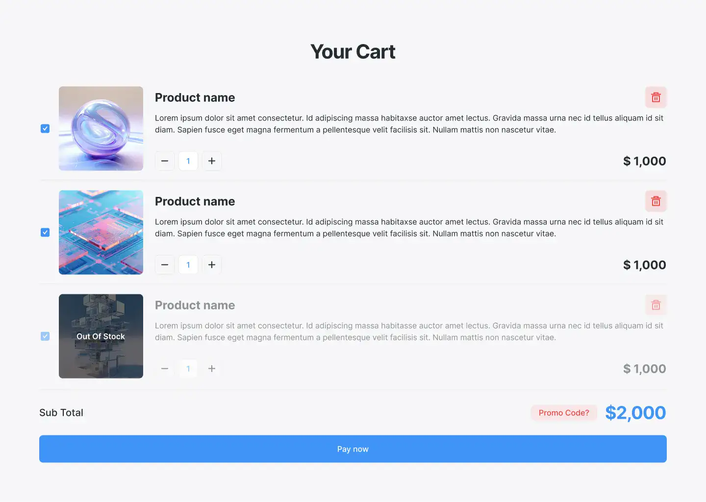 Ecommerce-ready cart, checkout, and payment detail blocks optimised for clarity and conversions.