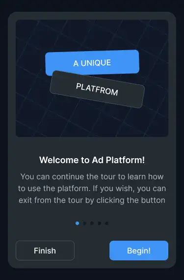 Multi-step flows for onboarding, signups, or product tours. Includes visual progress indicators.