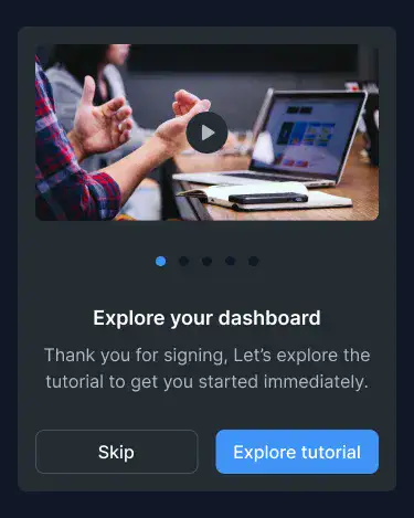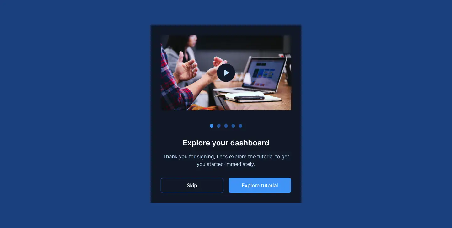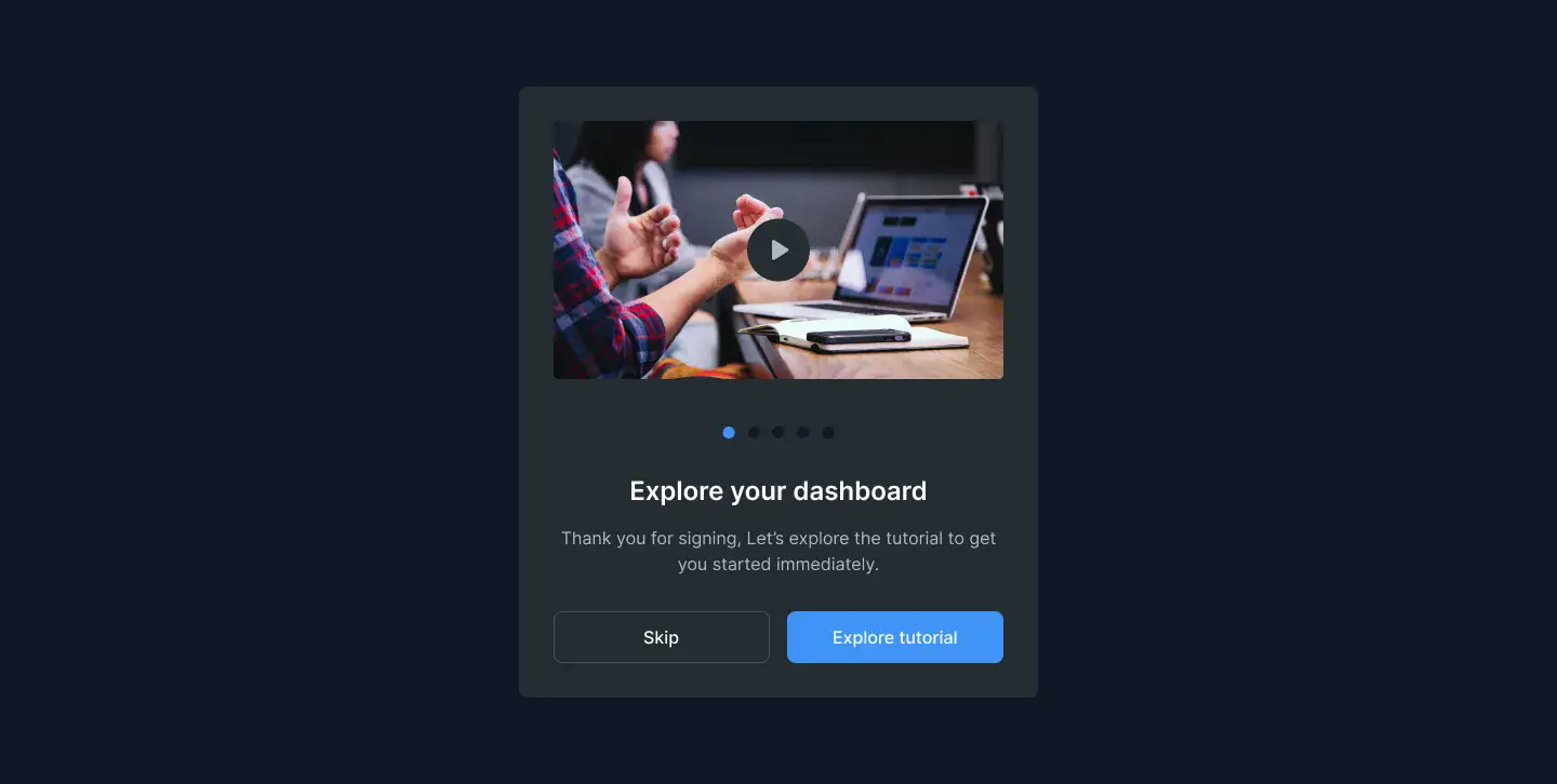 Multi-step flows for onboarding, signups, or product tours. Includes visual progress indicators.