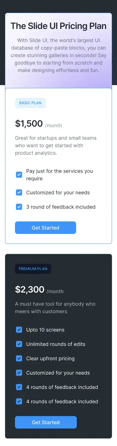 Break down feature differences clearly using side-by-side or table-style layouts. Great for upsell pages.