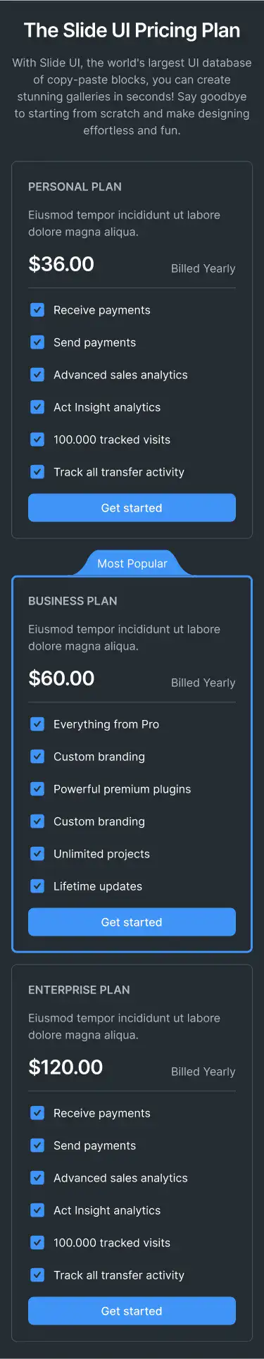 Pricing Layout for Figma — modern, themeable and responsive across Desktop, Tablet and Mobile. Includes Light, Dark and Accent modes for fast customisation. Ideal for Crypto, Energy, Fintech.