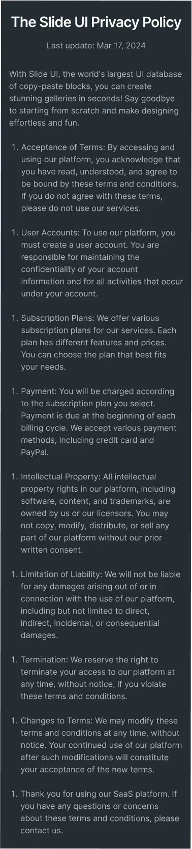 Simple privacy terms layout with clear formatting and visual hierarchy.