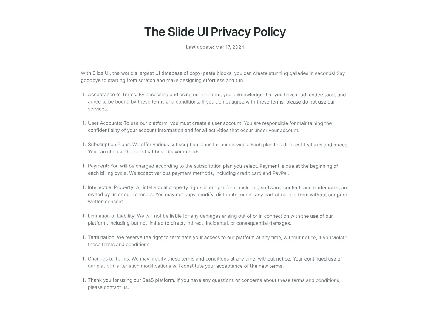 Privacy Policy Layout — Clean