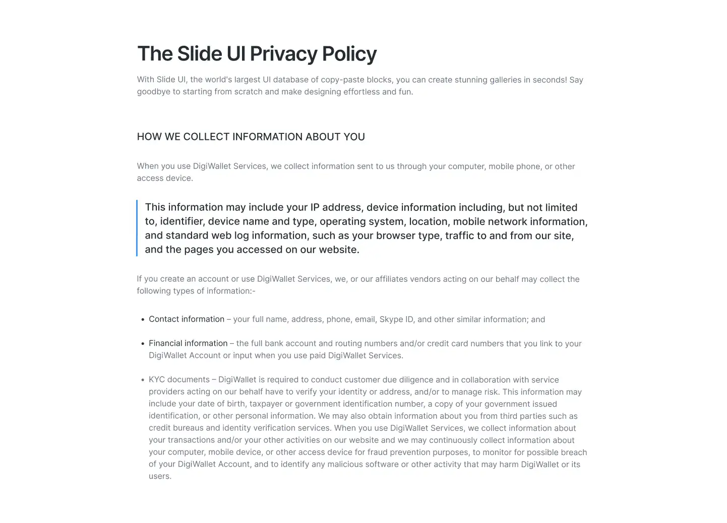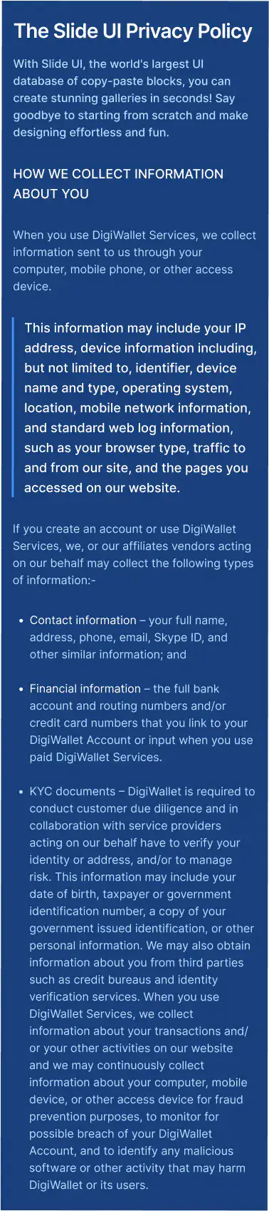Simple privacy terms layout with clear formatting and visual hierarchy.