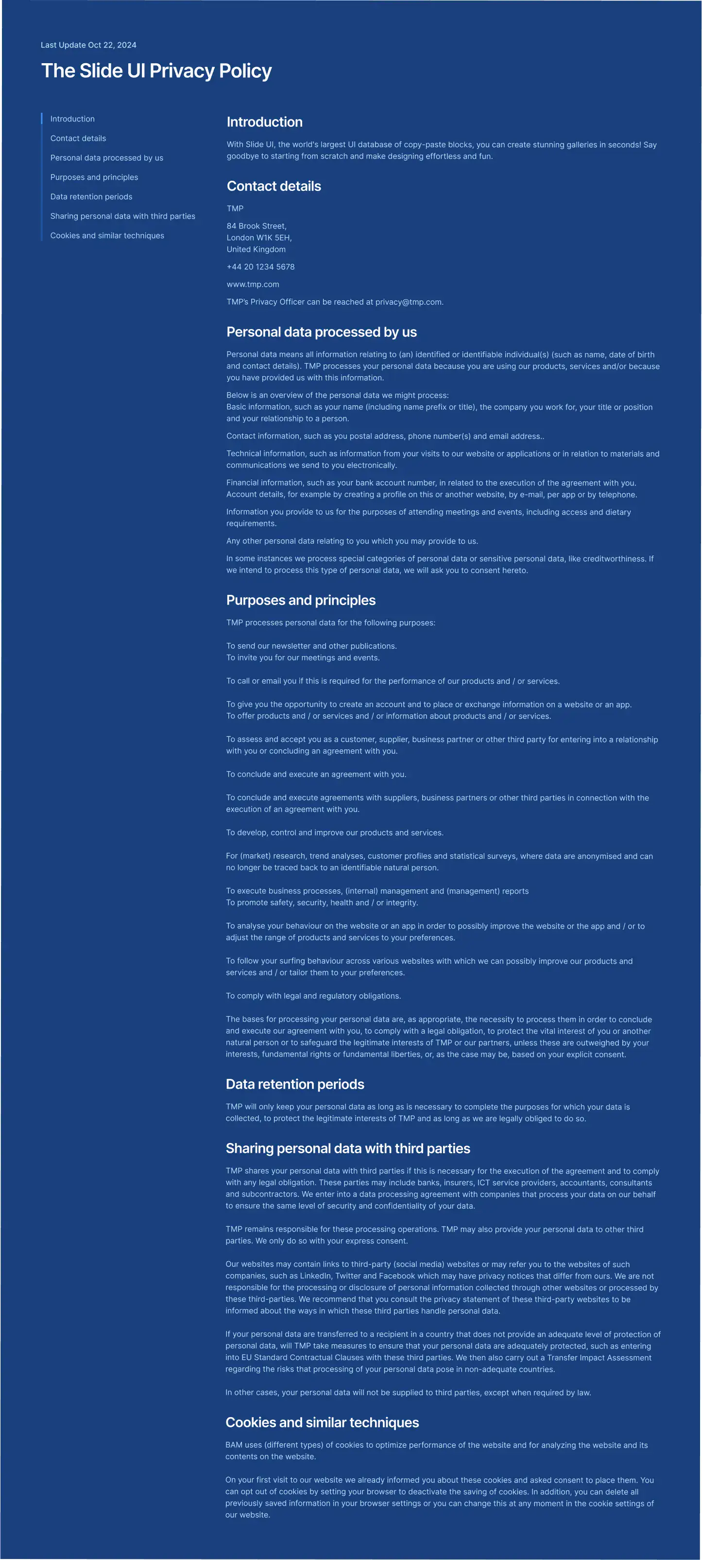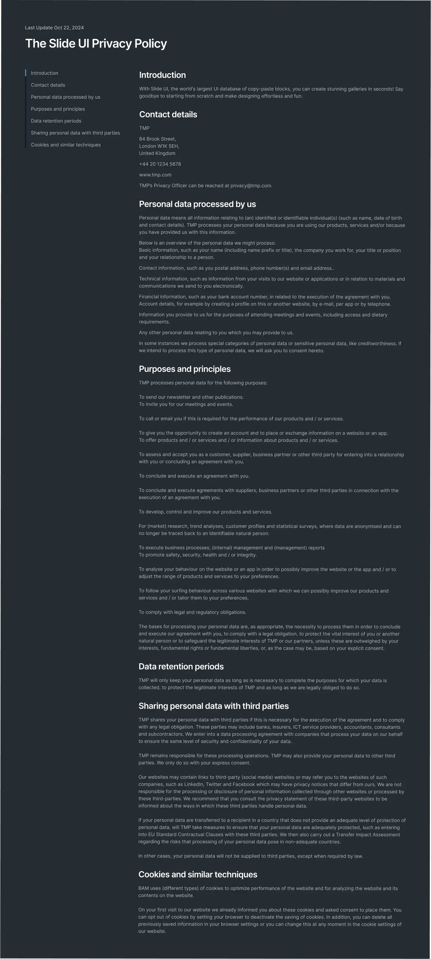 Privacy Policy Layout for Figma — clean, themeable and responsive across Desktop, Tablet and Mobile. Includes Light, Dark and Accent modes for fast customisation. Ideal for Events, Finance, Healthcare.