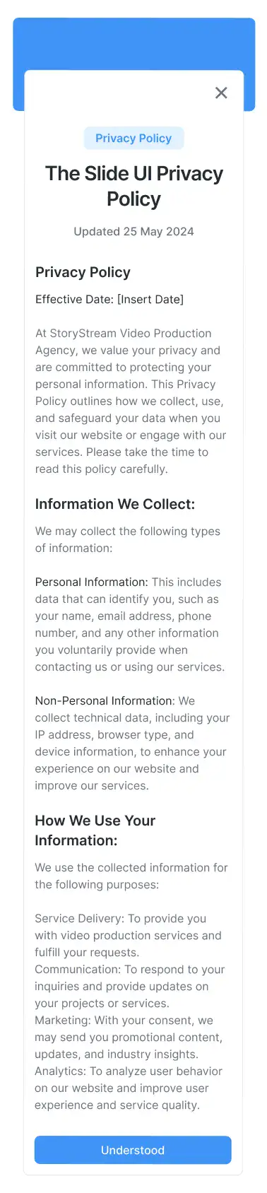 Privacy Policy Layout for Figma — clean, themeable and responsive across Desktop, Tablet and Mobile. Includes Light, Dark and Accent modes for fast customisation. Ideal for Fintech, Healthcare, Insurance.