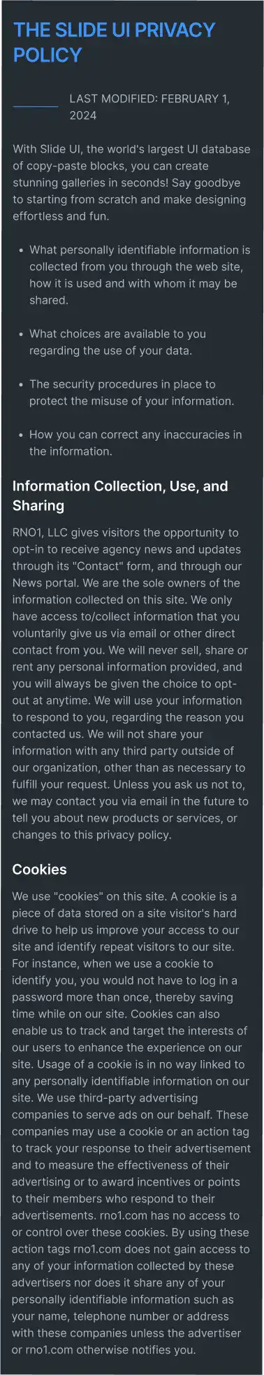 Simple privacy terms layout with clear formatting and visual hierarchy.