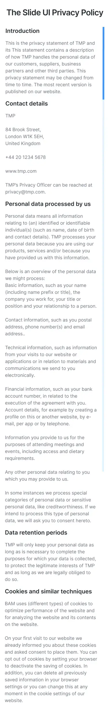 Privacy Policy Layout for Figma — minimal, themeable and responsive across Desktop, Tablet and Mobile. Includes Light, Dark and Accent modes for fast customisation. Ideal for Energy, Events, Healthcare.
