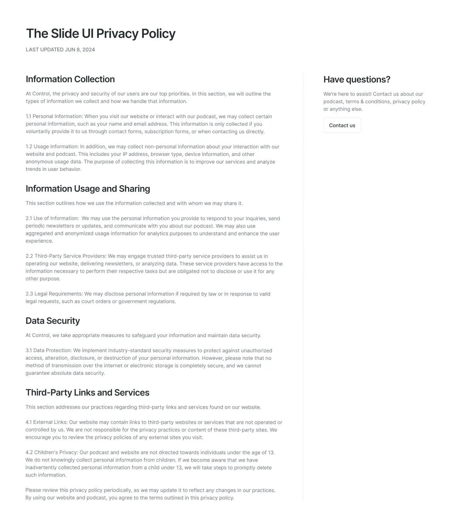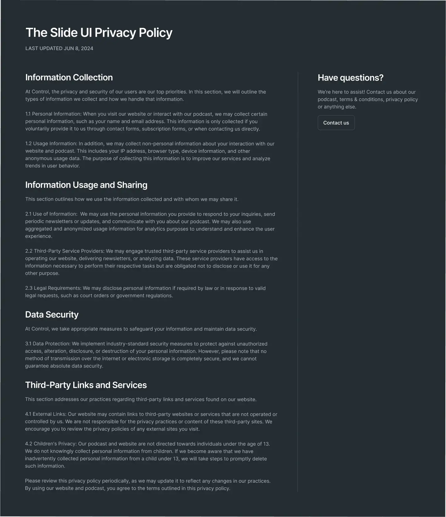 Privacy Policy Layout for Figma — minimal, themeable and responsive across Desktop, Tablet and Mobile. Includes Light, Dark and Accent modes for fast customisation. Ideal for Automotive, Crypto, Events.
