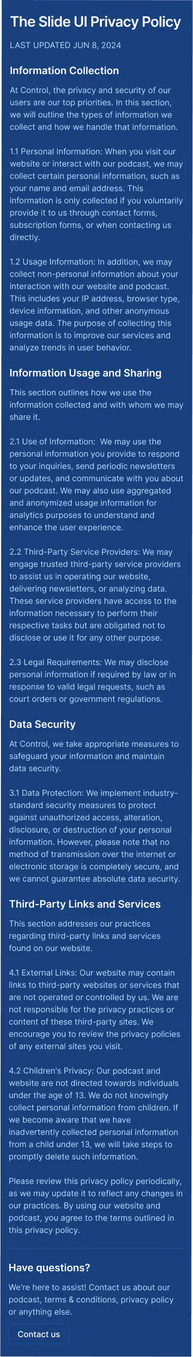 Simple privacy terms layout with clear formatting and visual hierarchy.