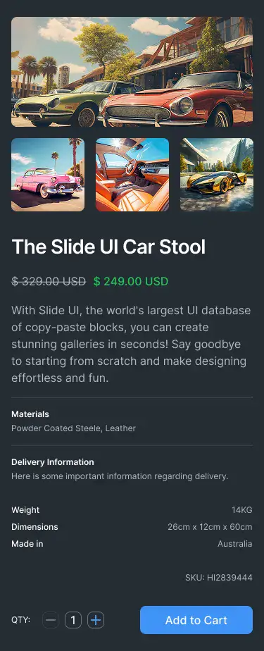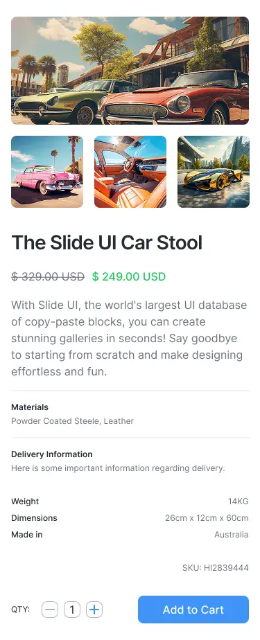Ecommerce-ready cart, checkout, and payment detail blocks optimised for clarity and conversions.