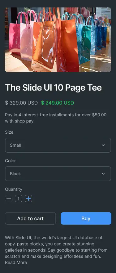 Ecommerce-ready cart, checkout, and payment detail blocks optimised for clarity and conversions.