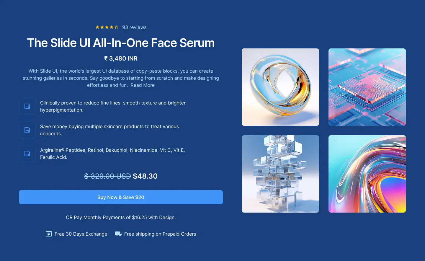 Grid or column-based layouts to highlight your best product features — fast, skimmable, and easy to reuse.