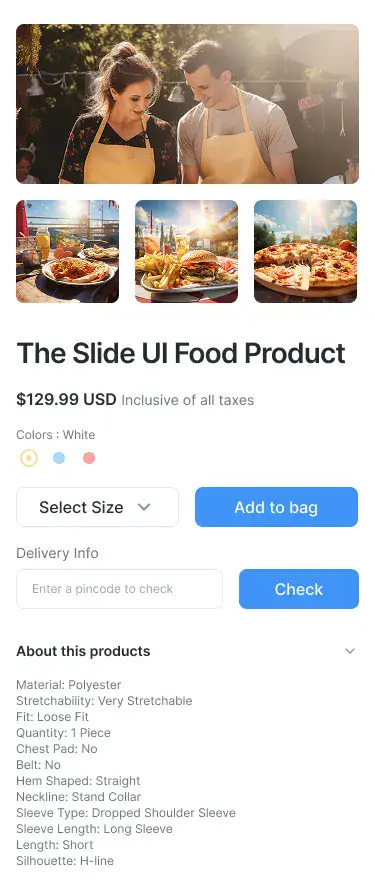 Ecommerce-ready cart, checkout, and payment detail blocks optimised for clarity and conversions.