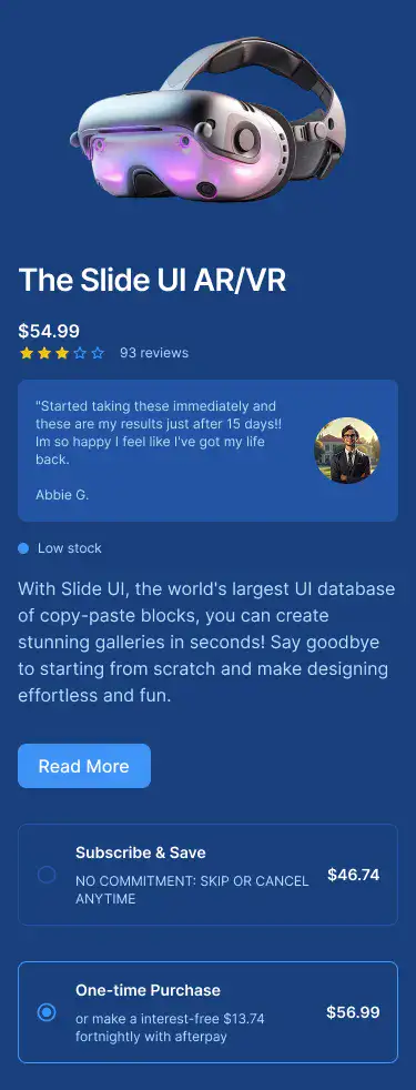 Trust-building review blocks that show user feedback, star ratings, or real testimonials with proof elements.