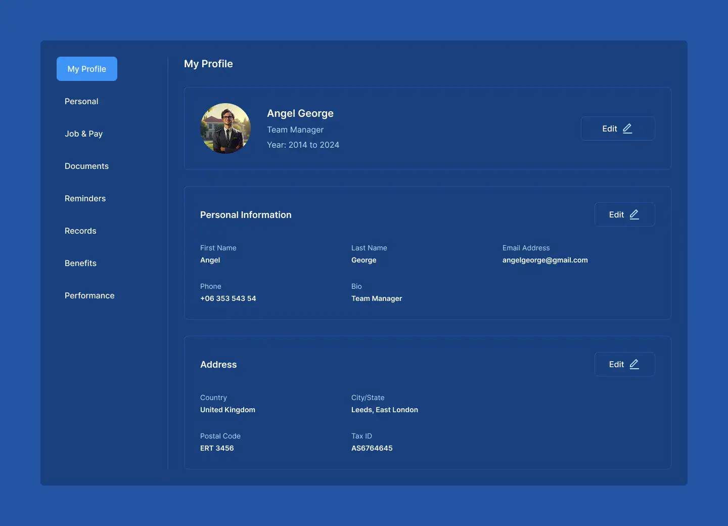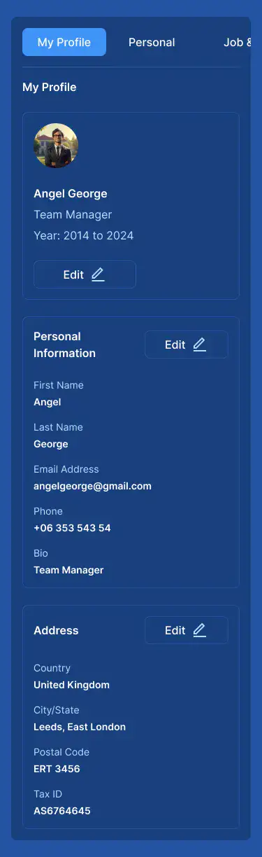 Profile Layout for Figma — clean, themeable and responsive across Desktop, Tablet and Mobile. Includes Light, Dark and Accent modes for fast customisation. Ideal for Finance, Hotel, Law.