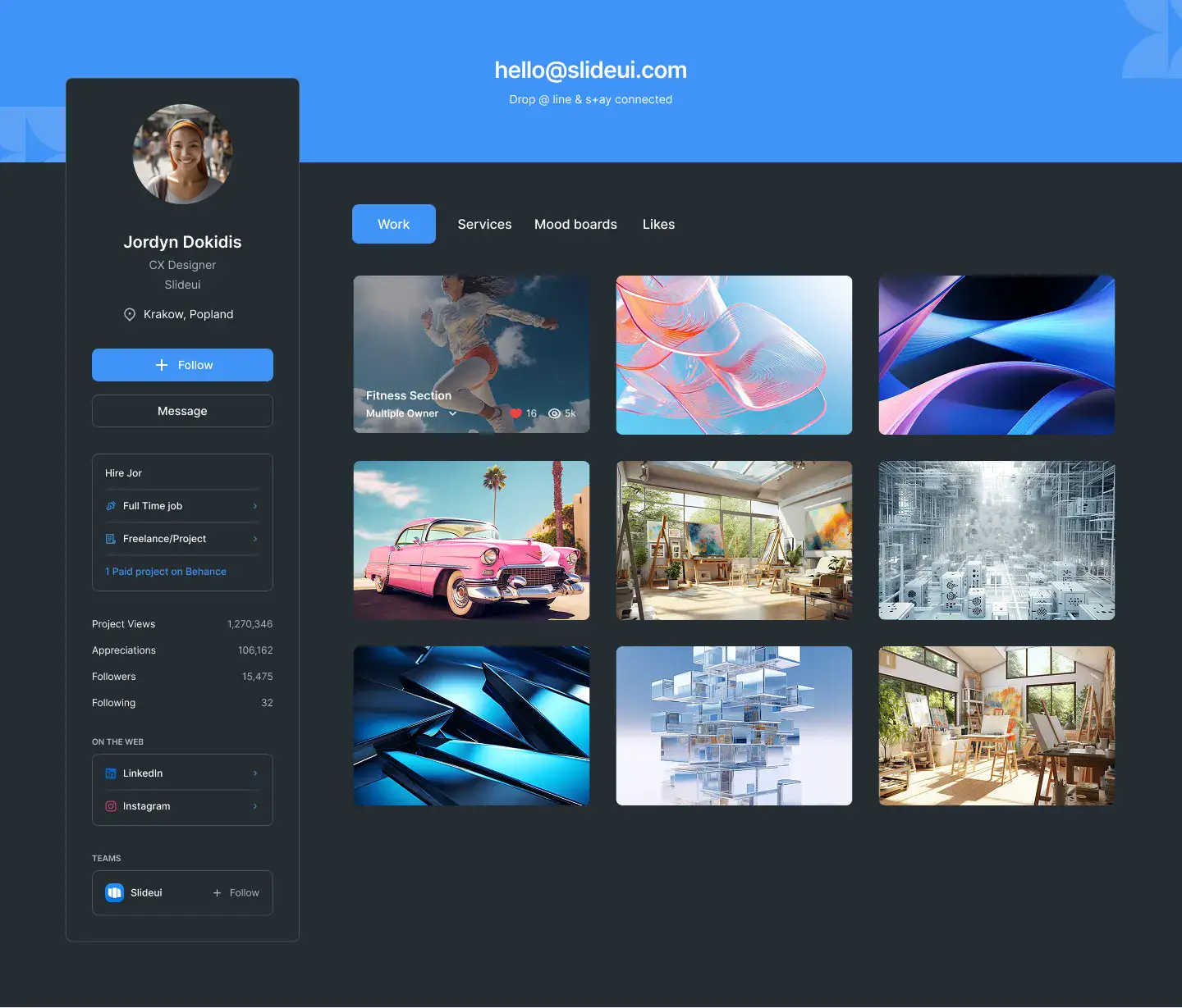 Profile Layout for Figma — clean, themeable and responsive across Desktop, Tablet and Mobile. Includes Light, Dark and Accent modes for fast customisation. Ideal for Finance, Healthcare, Hotel.