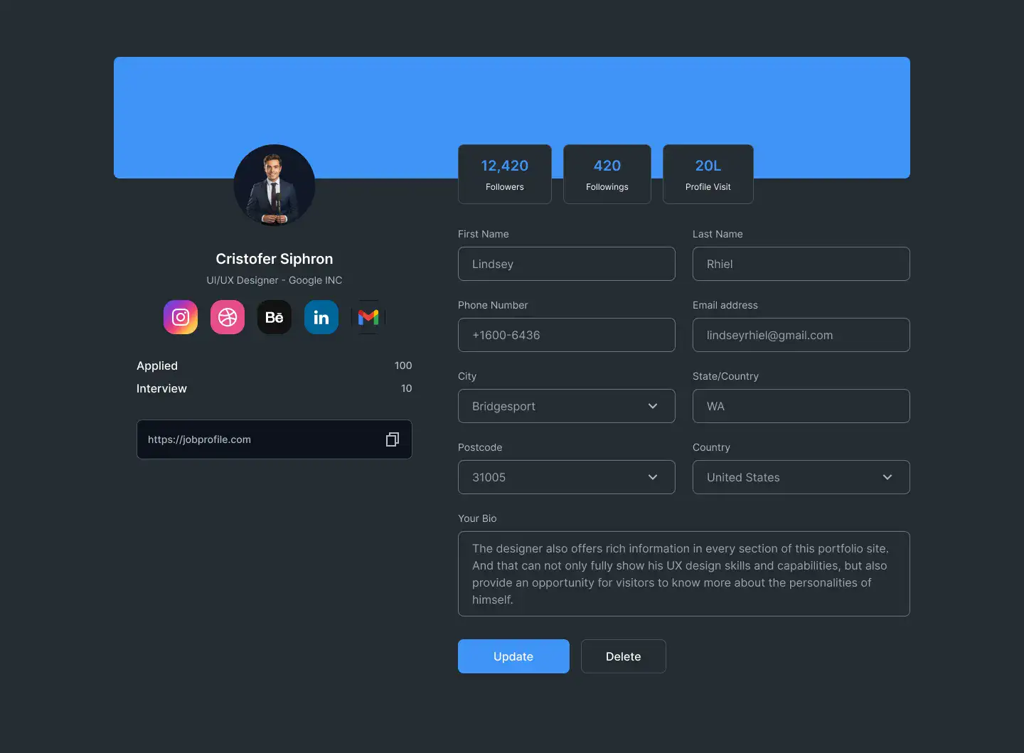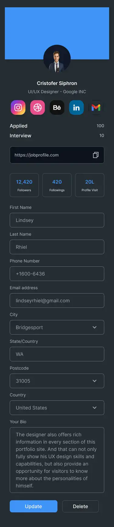 Profile Layout for Figma — clean, themeable and responsive across Desktop, Tablet and Mobile. Includes Light, Dark and Accent modes for fast customisation. Ideal for Agency, Events, Fitness.