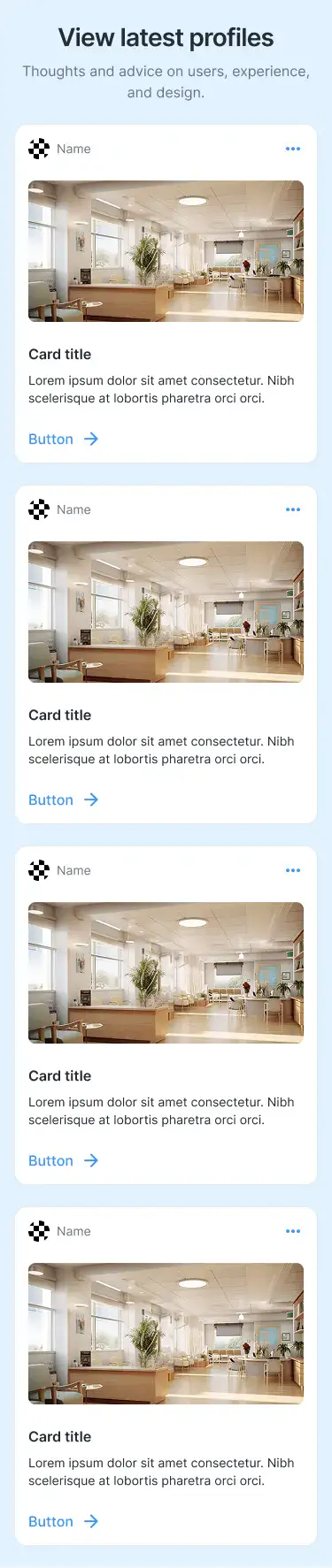 Display posts with preview cards, titles, and tags. Perfect for content hubs or design resource libraries.