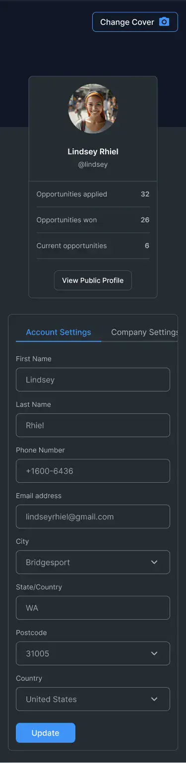 Profile Layout for Figma — modern, themeable and responsive across Desktop, Tablet and Mobile. Includes Light, Dark and Accent modes for fast customisation. Ideal for Ecommerce, Healthcare, Marketplace.