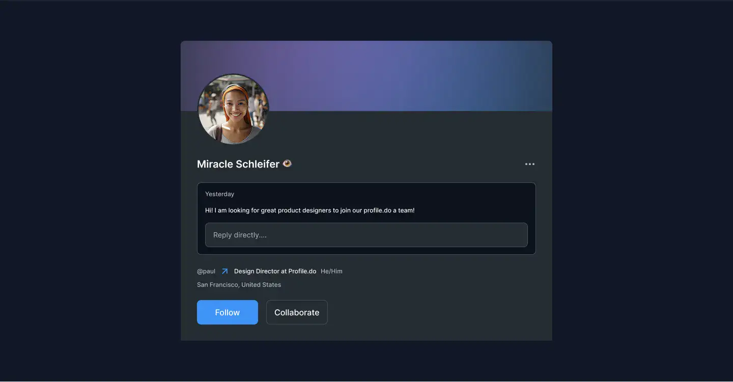 Profile Layout for Figma — swiss, themeable and responsive across Desktop, Tablet and Mobile. Includes Light, Dark and Accent modes for fast customisation. Ideal for Crypto, Events, Fintech.