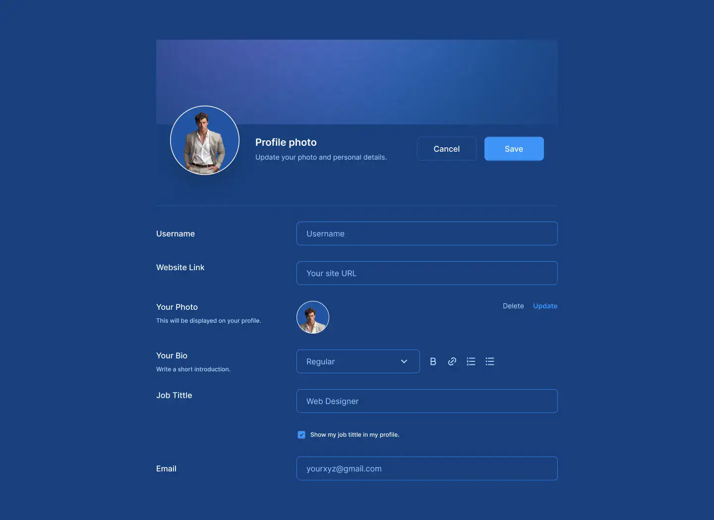 Profile Layout for Figma — swiss, themeable and responsive across Desktop, Tablet and Mobile. Includes Light, Dark and Accent modes for fast customisation. Ideal for Finance, SaaS, Transportation.