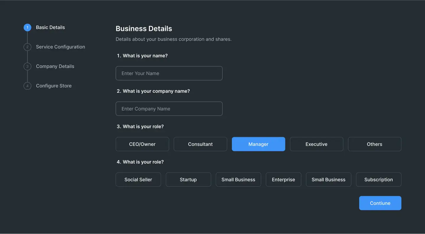 Multi-step flows for onboarding, signups, or product tours. Includes visual progress indicators.