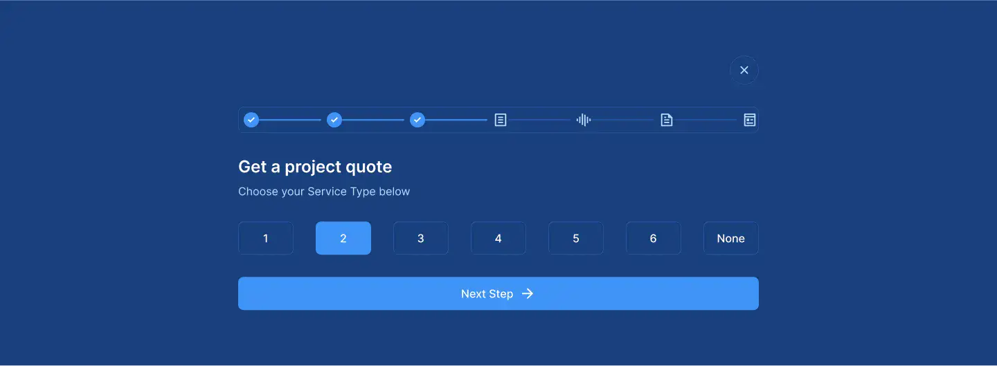 Multi-step flows for onboarding, signups, or product tours. Includes visual progress indicators.