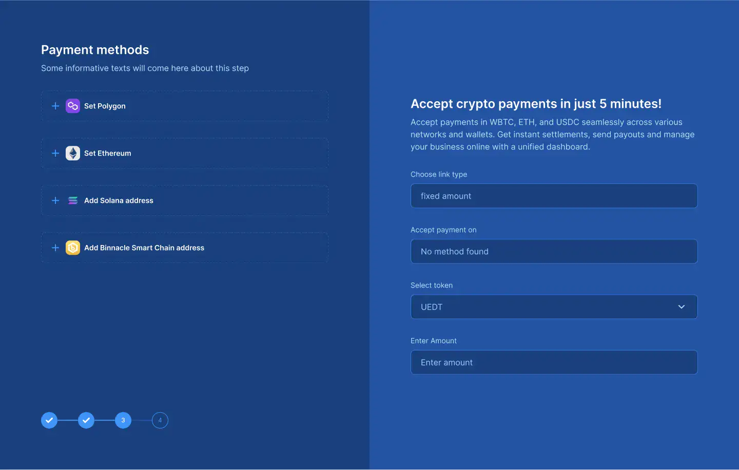 Multi-step flows for onboarding, signups, or product tours. Includes visual progress indicators.
