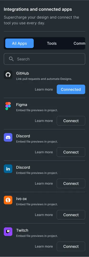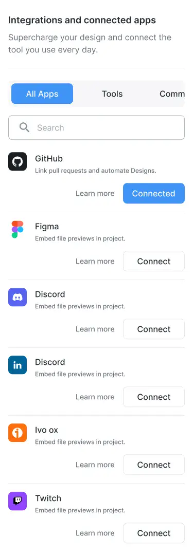 Showcase product integrations visually with logos, categories, and tool descriptions.