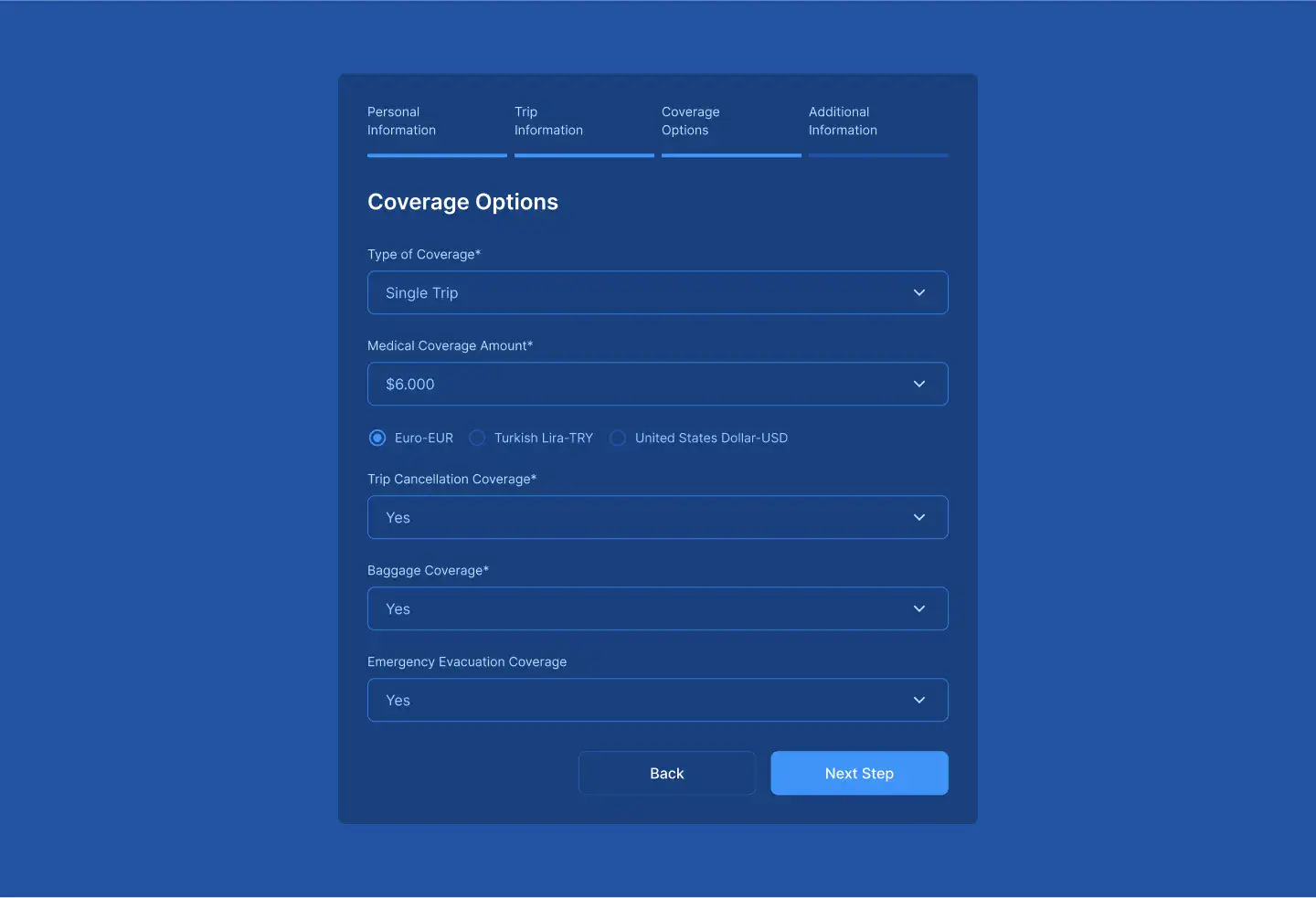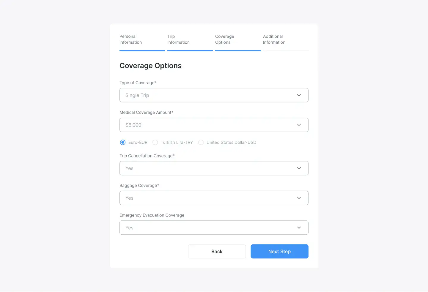 Registration Progress Steps Layout — Swiss