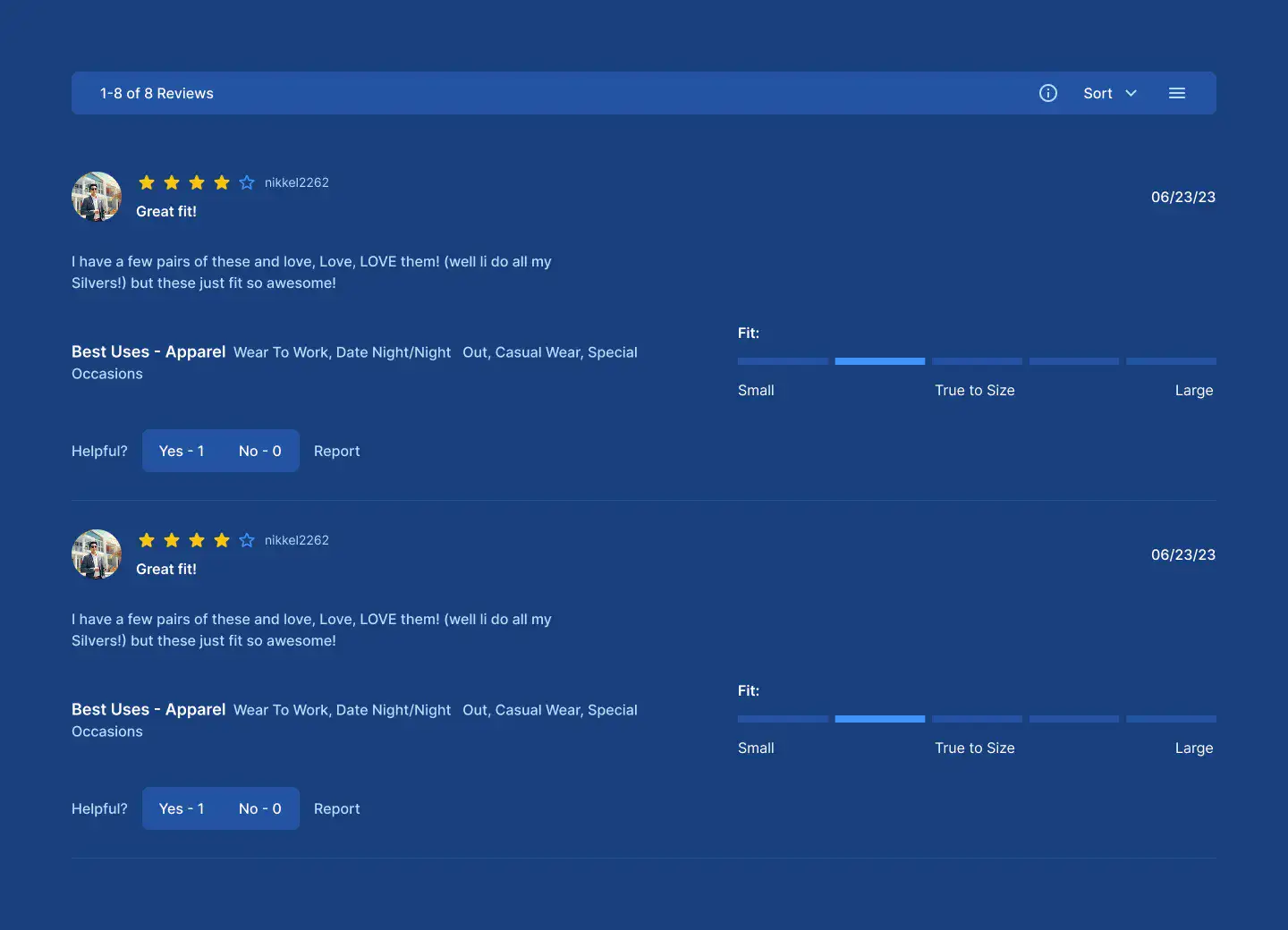 Trust-building review blocks that show user feedback, star ratings, or real testimonials with proof elements.