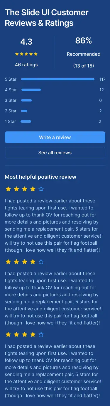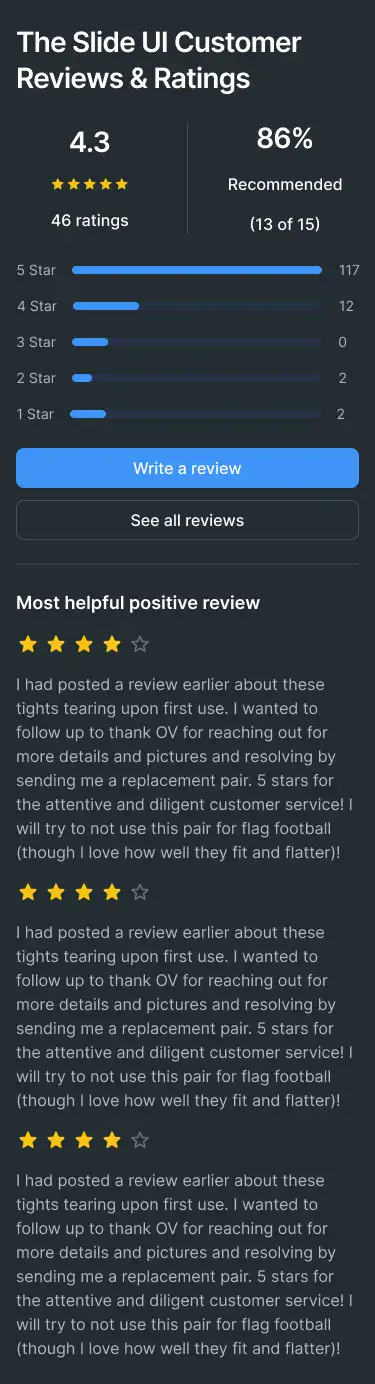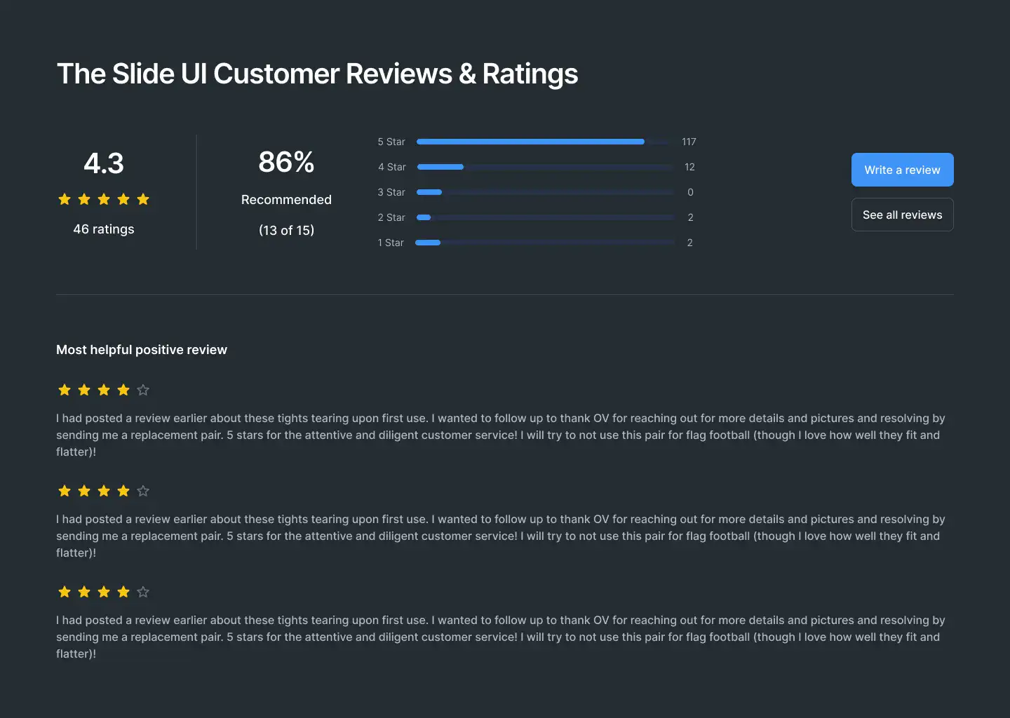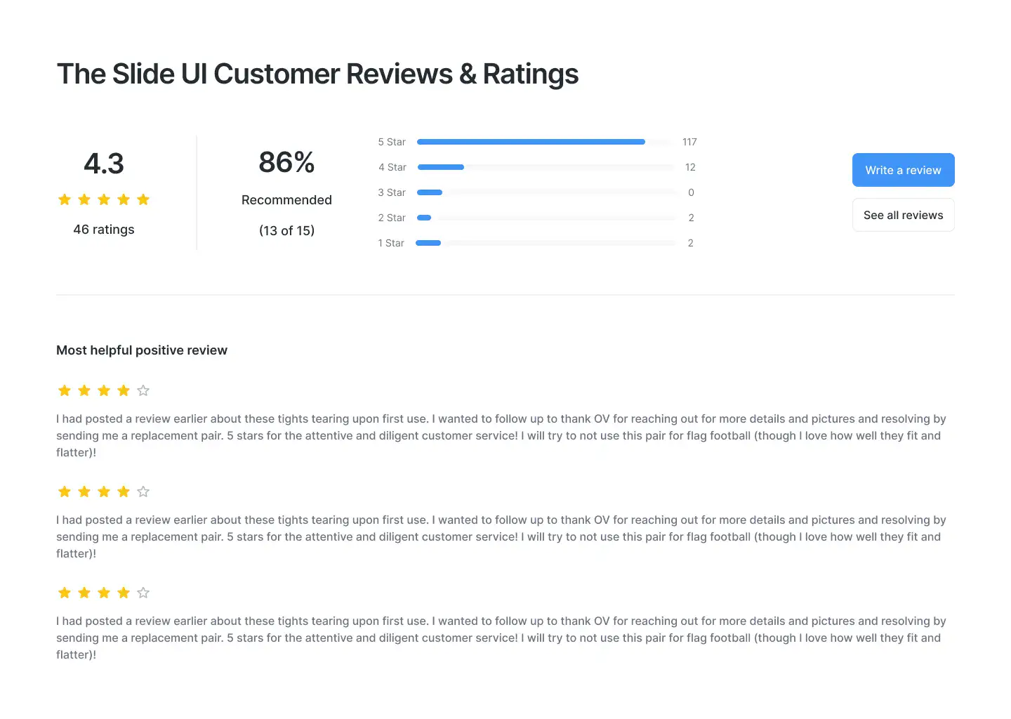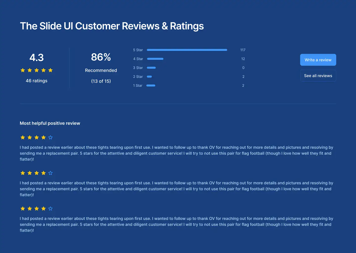 Trust-building review blocks that show user feedback, star ratings, or real testimonials with proof elements.