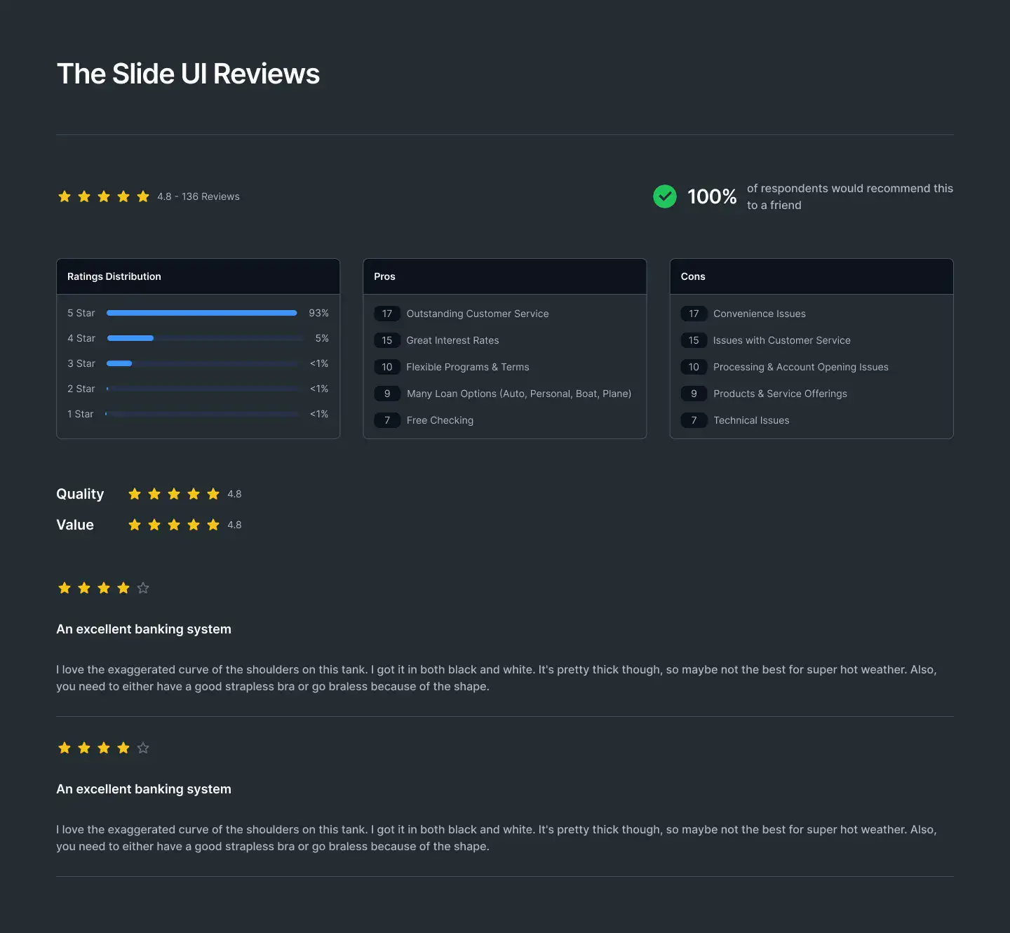 Reviews Layout — Clean