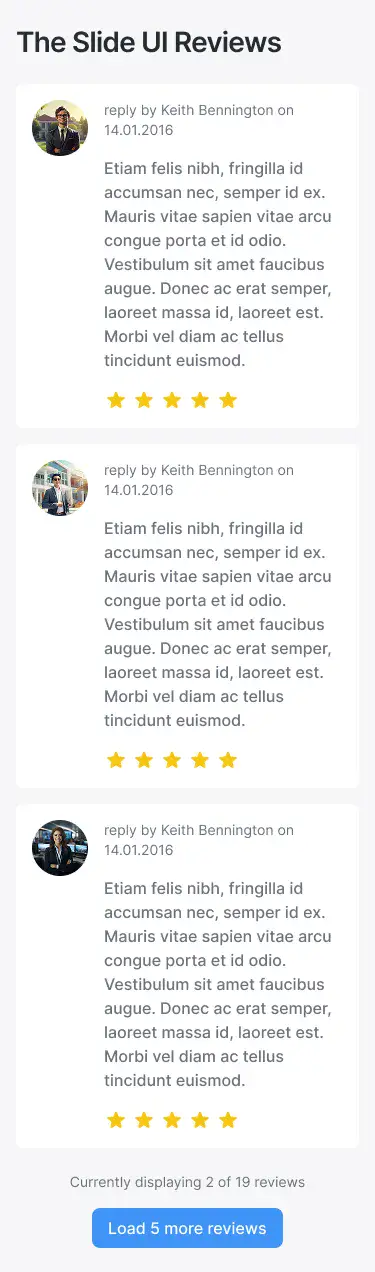 Trust-building review blocks that show user feedback, star ratings, or real testimonials with proof elements.