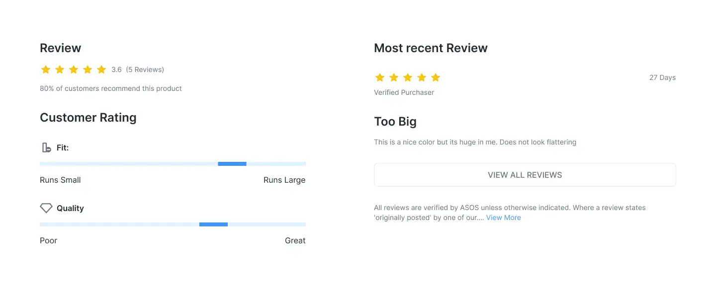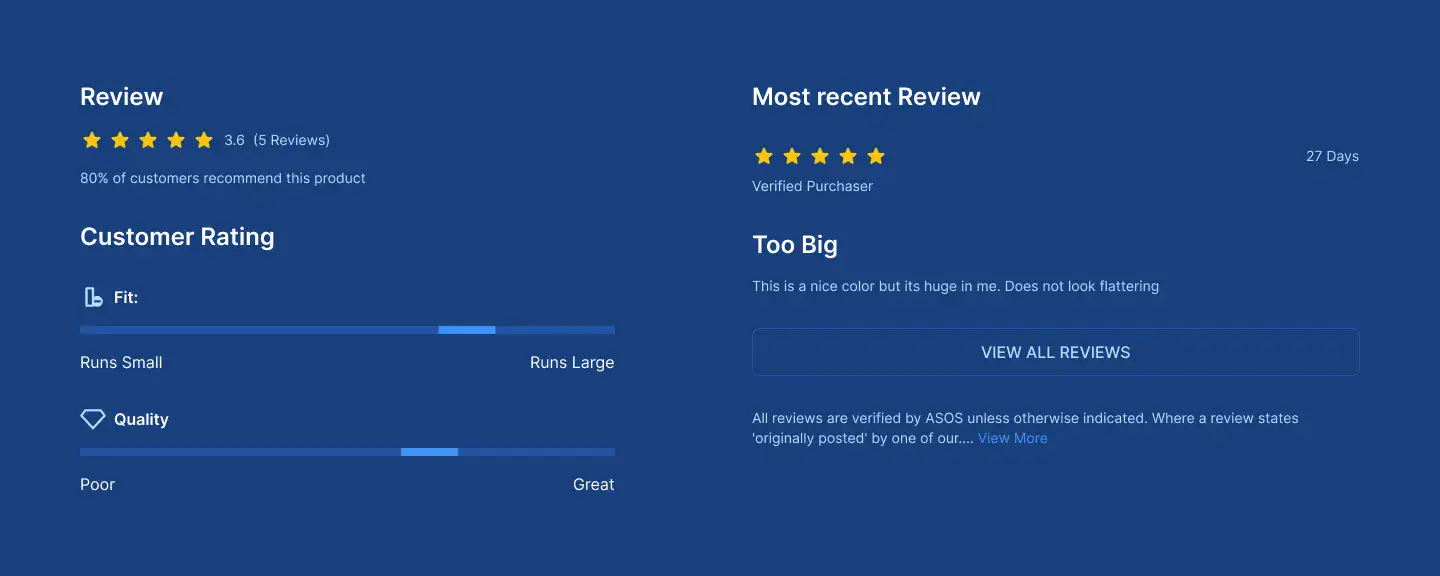 Trust-building review blocks that show user feedback, star ratings, or real testimonials with proof elements.
