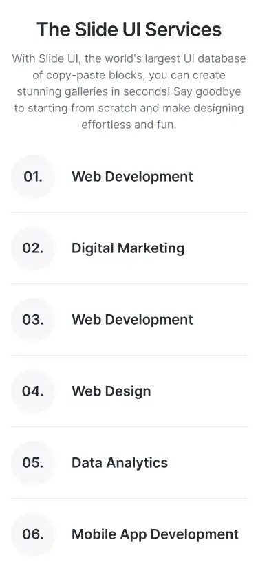 View Benefit / Statistic blocksPerfect for agencies, consultants, and SaaS tools to clearly explain services offered, with icon, card, or list formats.