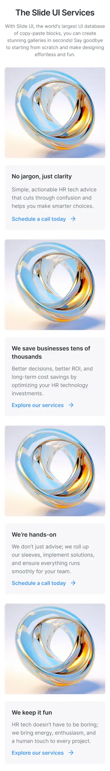 Lightweight sections for storytelling, intros, or visual breaks. Ideal for portfolios, agencies, and SaaS.