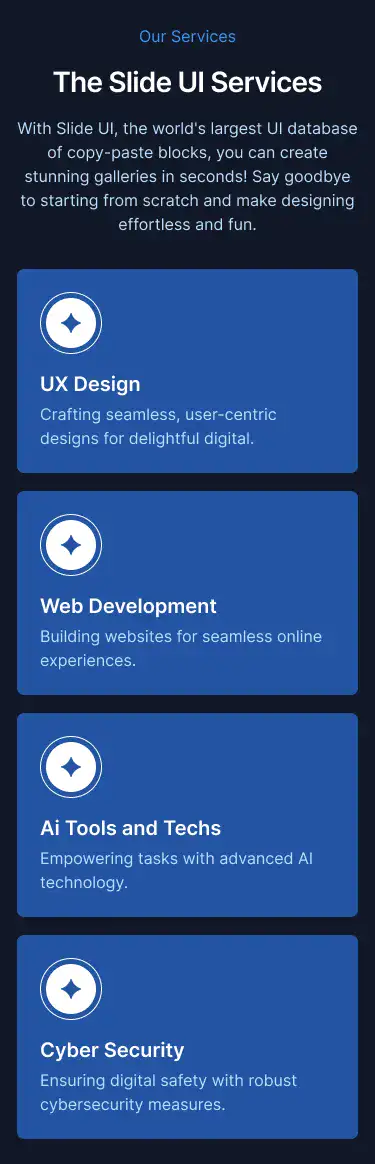 View Hero blocksShowcase processes, features, or onboarding in a clean 3–4 step layout. These are perfect for explaining complex ideas simply.