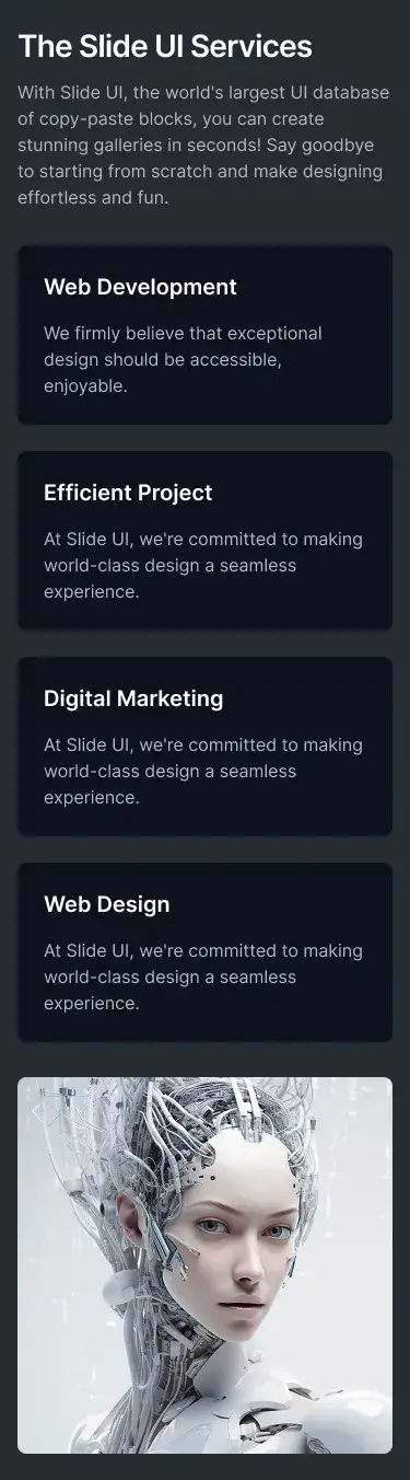 Lightweight sections for storytelling, intros, or visual breaks. Ideal for portfolios, agencies, and SaaS.