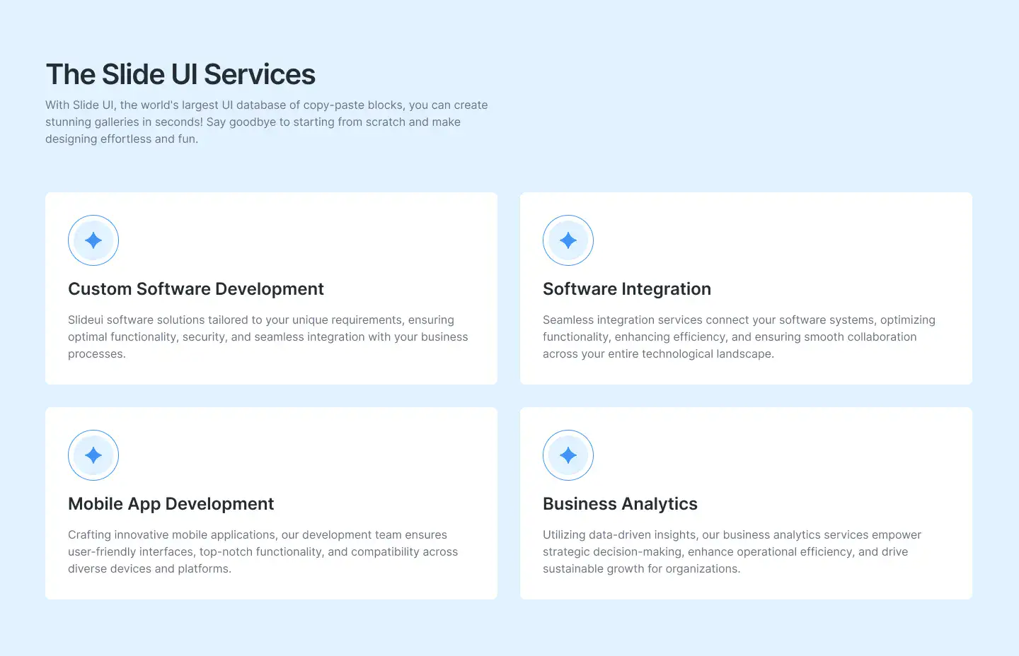 View Benefit / Statistic blocksPerfect for agencies, consultants, and SaaS tools to clearly explain services offered, with icon, card, or list formats.