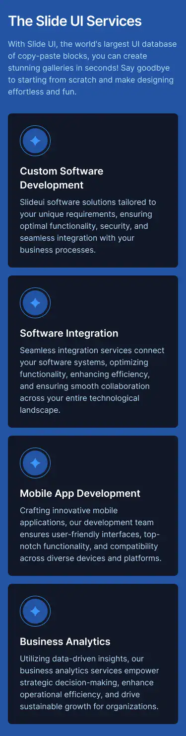 Grid or column-based layouts to highlight your best product features — fast, skimmable, and easy to reuse.