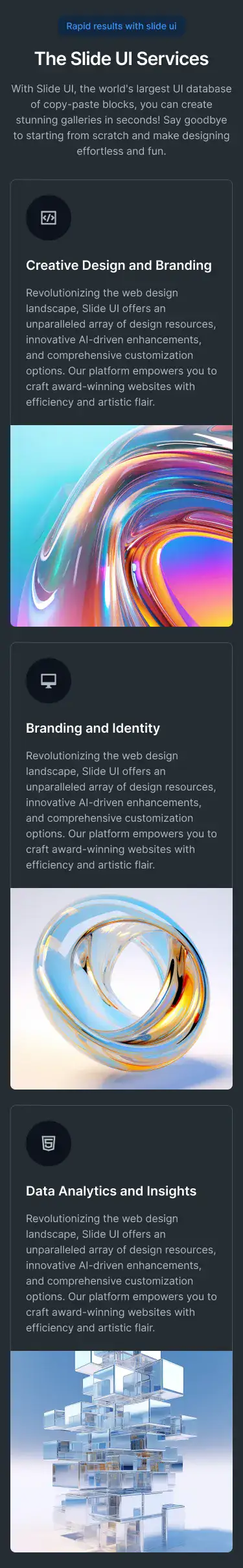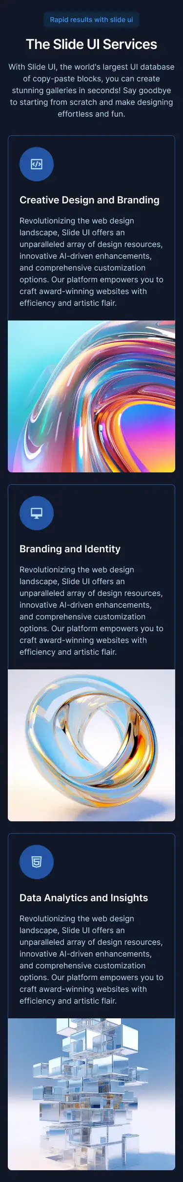 Lightweight sections for storytelling, intros, or visual breaks. Ideal for portfolios, agencies, and SaaS.