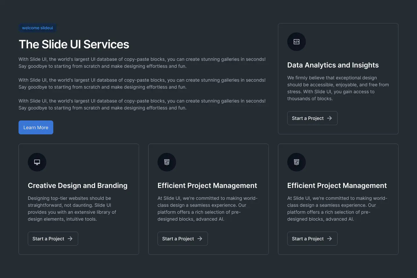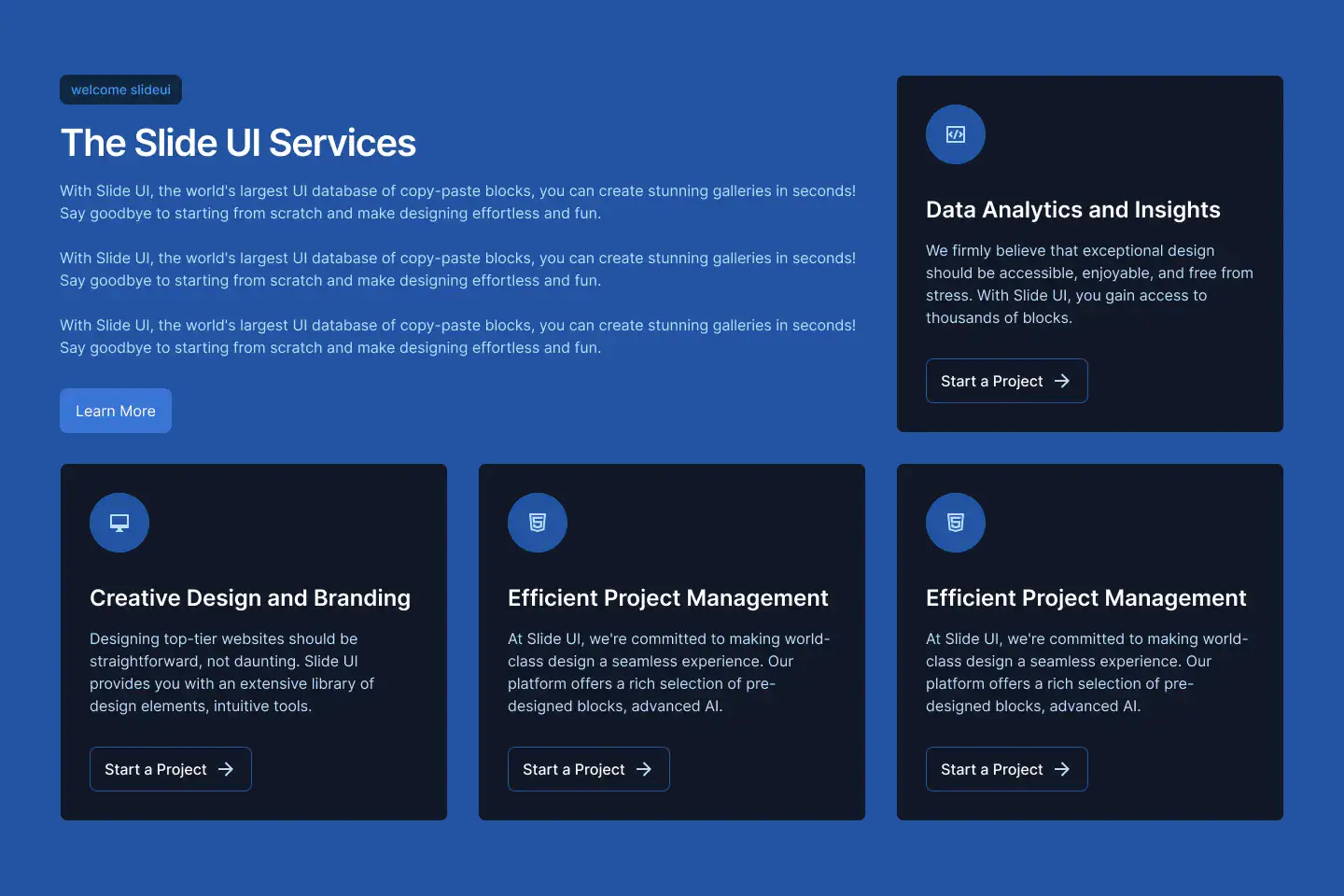 View Hero blocksShowcase processes, features, or onboarding in a clean 3–4 step layout. These are perfect for explaining complex ideas simply.